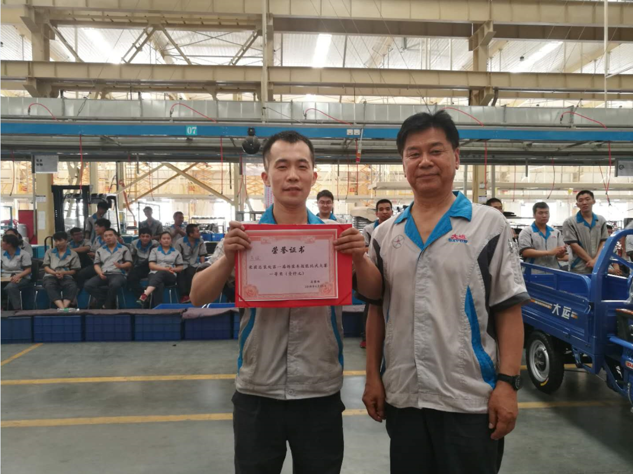 為豐富員工的業(yè)余生活,充分調(diào)動員工的積極性和創(chuàng)造性,并在公司內(nèi)部營造“比、學(xué)、趕、幫、超”的良好氛圍,總裝處率先垂范,積極組織舉辦運城大運機(jī)車有限公司首屆拆裝車技能比武大賽。比賽一共分為四個組,總裝處A、B兩條生產(chǎn)線各出兩個組,每組9個人。比賽分為拆車、裝車兩個部分,每完成一個部分,全組成員列隊站好,由專業(yè)裁判組進(jìn)行檢驗打分。